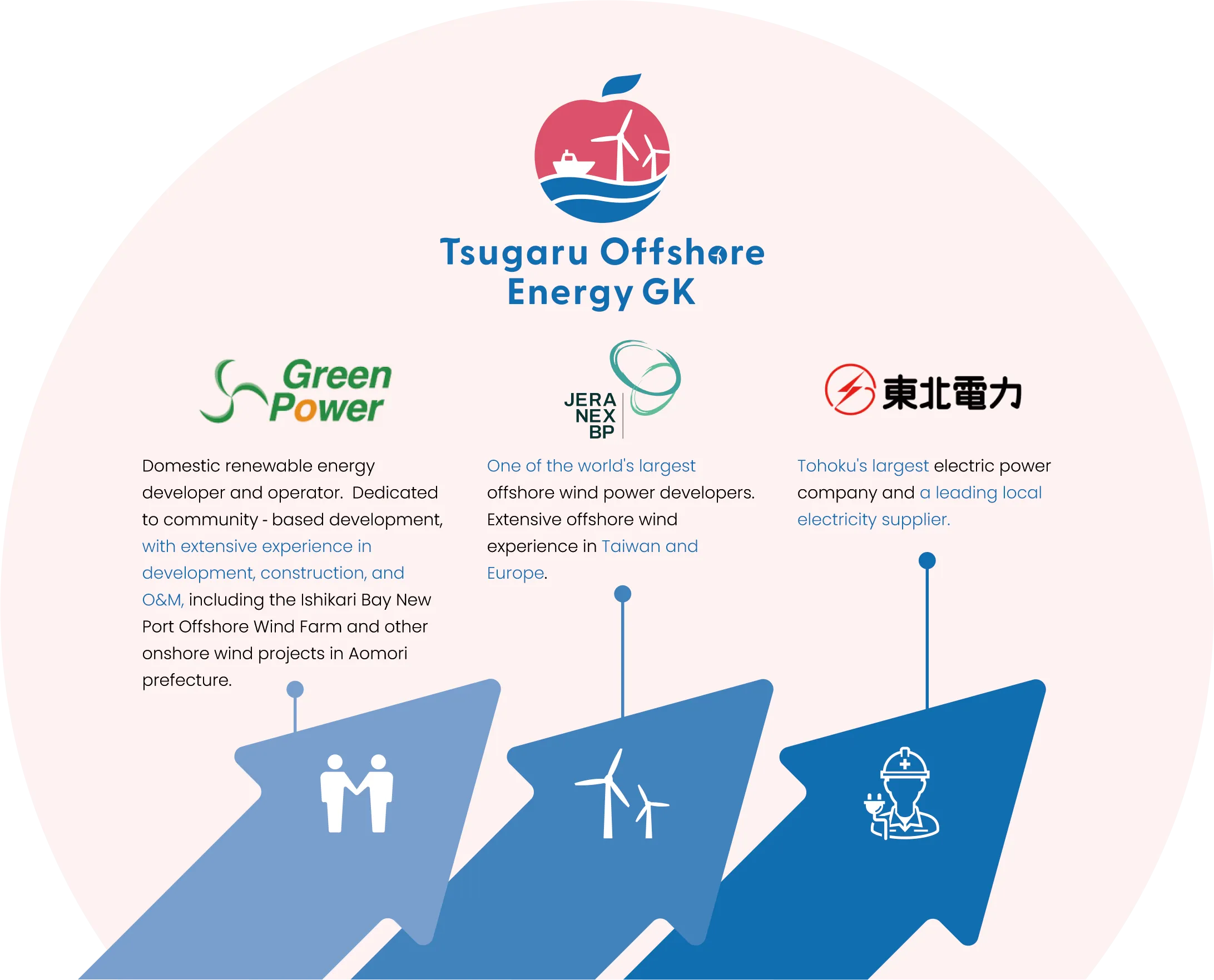 Our company, guided by the philosophy “Tsugaru’s Wind, Japan’s Power – Connecting People and the Future from Here,” aims to contribute to both the local and national economy, while supporting Japan’s goal of carbon neutrality by 2050, through offshore wind projects located in the Sea of Japan, off southern Aomori Prefecture.